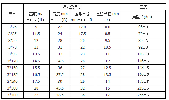 填充条颜色一般为黑色,也可以是商定得其他颜色。外形为扇形,填充条表面允许毛糙,填充条应该塑化良好,挤出均匀,表面不允许有水。