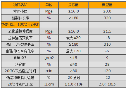 本产品具有良好的机械物理性能和挤塑加工性能,适用于耐热温度90℃电线电缆的护套层材料。